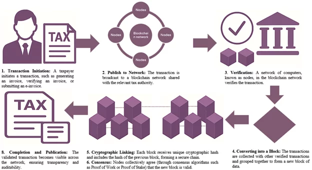 Transaction Initiation: A taxpayer initiates a taxable transaction and submits it to blockchain technology via a digital invoice or a common technology platform.