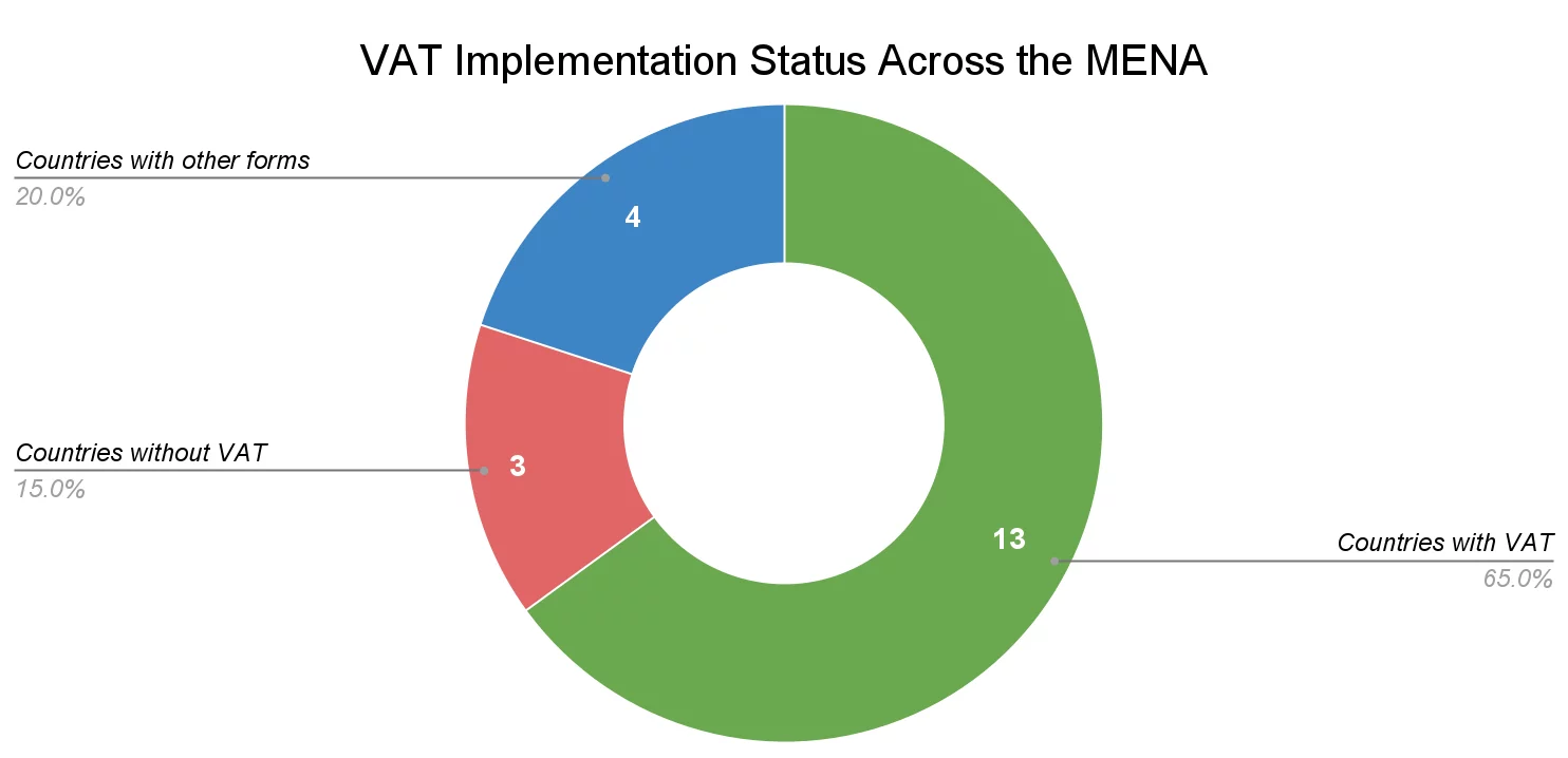 Out of 20 MENA countries included in the report, 13 have VAT systems in place, and three do not have VAT nor any other similar taxes in effect. In contrast, four have some form of indirect or consumption tax applicable to the supplies of goods and services.